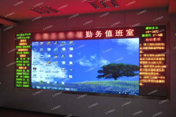 武警某总队项目大屏幕系统由2x3 50寸 DLP无缝拼接。全套系统选用环宇蓝博公司世界先进双灯光源技术显示产品。