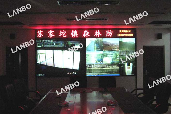 北京市海淀区苏家坨森林防火指挥中心DLP拼接墙大屏幕显示系统采用了DLP 100英寸 1*2 显示屏,以及两套LED显示屏,显示内容包括森林防火区视频监控、森林防火点数据统计、网络视频会议用途以及日常会议用途。