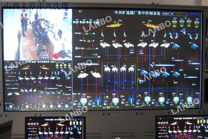 山西太原中兴洗煤厂DLP拼接墙大屏幕显示系统采用DLP67英寸2*3显示屏,主要用于煤矿监控,包括矿区监控,井下监控以及产煤数据分析与统计,作为煤矿的安全监控以及产量、品质监控部门调度工具,LANBO为煤矿安全作有力的保障。