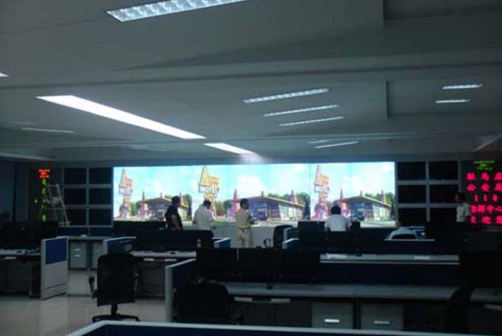 “河南驻马店公安局DLP拼接墙大屏幕显示系统”由“北京恒烨明阳光电科技有限公司”承建。1024*768分辨率,60英寸,2*7DLP拼接墙大屏幕显示系统,驻马店公安局2×7组合显示屏现以正式完工。本套系统单元采用双灯结构配备嵌入式多屏处理器显示各种监控视频信号,该大屏幕显示系统应用于指挥监控,是DLP拼接显示系统在公安部门应用的一个典型工程案例。北京恒烨明阳光电科技有限公司是国内著名的大屏幕显示系统生产厂家。