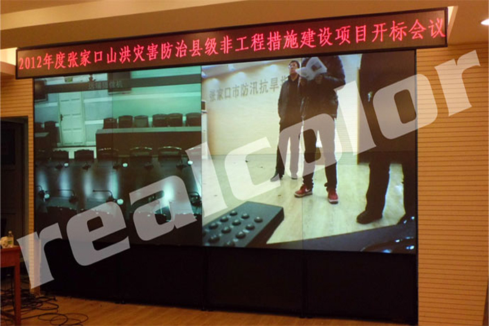 DLP大屏幕拼接屏项目用于清水河水域监测,采用2*4 60寸DLP大屏幕拼接屏,大屏幕系统式上配双色LED显示条屏,外部处理器采用5路VGA输入,2路视频信号输入,8路DVI输出。