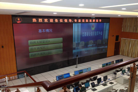 值得一提的,信息化综合集成平台中的核心——可视化信息显示系统,是GQY视讯根据DLP背投拼接显示系统的实际情况和相关要求,包括现场环境、系统功能和设备要求,为江西省公安消防总队应急救援指挥中心精心设计的一套分布式大屏幕拼接显示系统。