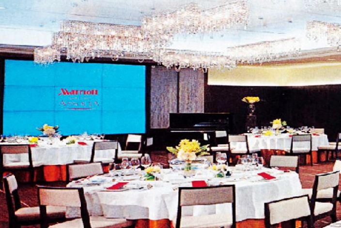 在宴会厅安装的XGA50'' 3×3 150V拼接屏,可完美播放结婚仪式、演讲会等各类活动的影像信息。