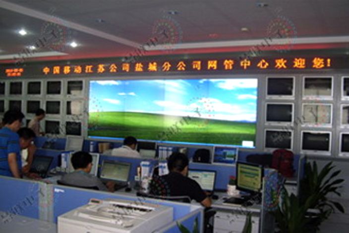 江苏盐城移动分公司DLP拼接电视墙大屏幕显示系统采用50英寸2×4 DLP大屏拼接,是慧联电子在2010年为用户精心设计制造。满足了盐城移动公司信息发布,是DLP拼接电视墙在电信广电的工程案例。