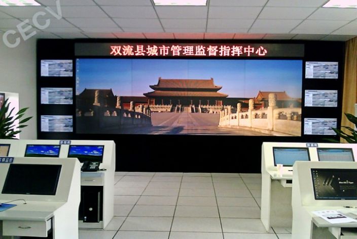 成都市双流数字城管指挥中心DLP拼接墙由深圳市中电视讯有限公司承建。该DLP拼接墙采用了1024*768分辨率,60寸,2行*4列,成为成都市双流数字城管指挥中心信息发布的重要平台,是DLP拼接墙在政府机关应用的一个工程案例。