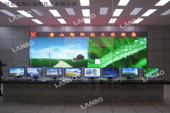 “河北唐山旭阳化工有限公司DLP拼接墙大屏幕显示系统”由“北京环宇蓝博科技有限公司”承建。DLP60英寸2*5显示屏,LED显示屏一套主要用于化工厂监控信息、显示化工厂工程流程图以及统计数据,确保生产安全,同时厂区内消防与报警点也可以通过大屏幕实时检测数据并显示于大屏幕上。也可以通过厂区的闭路监控察看到某些不能亲临的工艺控制生产环节。系统配置无线触摸中央控制系统,使用者可以通过无线的触摸屏控制整个大屏幕系统的开关机、信号切换、显示模式切换、已经其他设备的电源控制,简单易学的控制界面实现的先进设备和简单操控的结合理念。