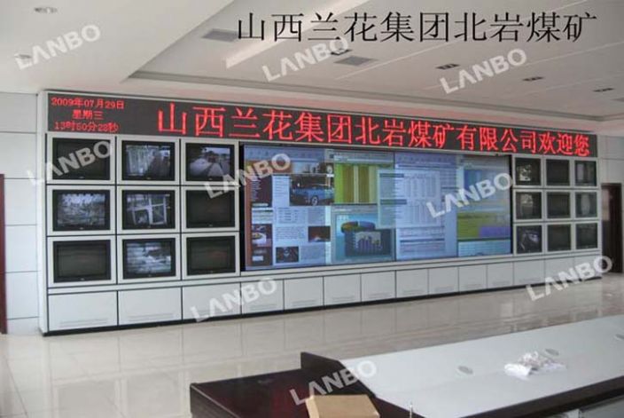 “山西兰花集团北岩煤矿DLP拼接墙大屏幕显示系统”由“北京环宇蓝博科技有限公司”承建。60英寸2x4显示屏,作为煤矿的安全监控以及产量、品质监控部门调度使用,也可以用作网络视频会议用途。