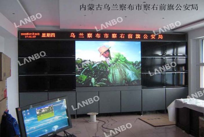 “内蒙古乌兰察布察右前旗公安局DLP拼接墙大屏幕显示系统”由“北京环宇蓝博科技有限公司”承建。DLP50英寸2*2显示屏,作为乌兰察布市市区各地治安监控用途,提供实时的视频监控图像和录像回放,兼做为视频会议,作为社会治安监控的平台提供实时的视频监控信息,并提供与市局同布的警情信息,设备作为重要会议信息显示用途,作为指挥中心显示系统的核心,DLP拼接墙大屏幕可以显示GPS警车在全市的定位、接警信息、公安网信息显示、接警电话记录等信息。