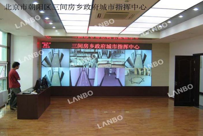 “北京市朝阳区三间房乡DLP拼接墙大屏幕显示系统”由“北京环宇蓝博科技有限公司”承建。60英寸2*4DLP拼接屏,LED显示屏,主要用于显示市政信息发布,控制人员可以在大屏幕显示系统上显示辖区内所有的实时监控视频图像。