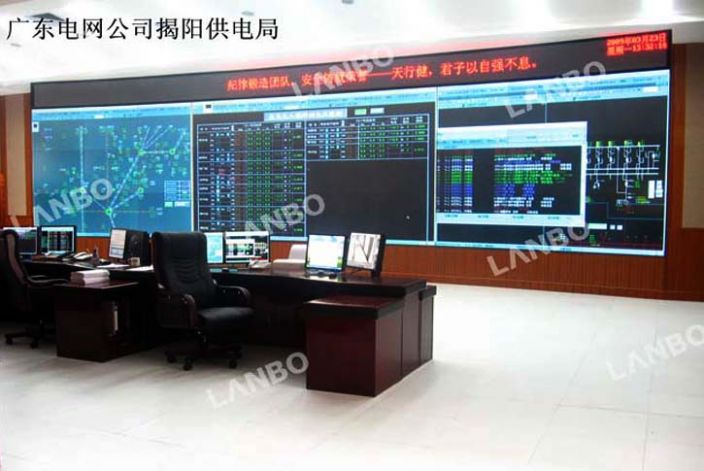 广东揭阳供电局DLP拼接大屏幕显示系统采用了DLP60英寸3*10弧形拼接显示屏,LED显示屏一套,主要用于电网信息监测,电力设施监控,供电信息统计以及电力抢修车辆调度,可将多达8台工作站图像同时显示到显示屏上随意拖放到任意位置以方便不同操作站的工作人员监看。充分满足了指挥中心信息发布要求,是北京环宇蓝博在电力行业的典型工程案例。