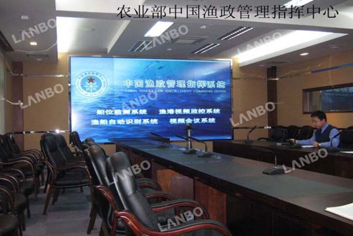 农业部中国渔政管理指挥中心DLP拼接屏由北京环宇蓝博科技有限公司承建。该DLP拼接屏由50英寸3*4规格组成,包括智能中控系统,能够实现室内窗帘音响控制屏幕开关控制显示内容控制,整体现场的装修、空调、消防、桌椅等硬件系统统一由LANBO提供。