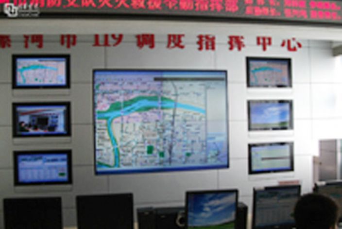 “河南漯河市公安消防支队指挥中心DLP拼接墙大屏幕显示系统”由“清投视讯(北京)科技有限公司”承建。1024*768分辨率,50英寸,2*2DLP拼接墙大屏幕显示系统,该大屏幕显示系统应用于指挥监控,是DLP拼接显示系统在公安消防应用的一个典型工程案例。清投视讯(北京)科技有限公司是国内著名的大屏幕显示系统生产厂家。