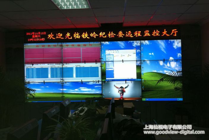 纪检委做为纪律监督组织,承载着监督惩治违法乱纪的国家重要部门,信息化系统对其也显的尤为重要。随着国家经济的发展,信息化技术的应用,现在越来越多的液晶显示产品已经被用到了各个信息系统建设中,仙视电子液晶拼接屏通过了铁岭市纪检委的最终认可,为其打造了PD46N4系列液晶拼接墙,用12台液晶屏完美组合成3x4液晶拼接大屏,安装于铁岭市纪检委监控大厅,仙视电子液晶拼接幕墙系列产品,一直以来经常被应用于国家信息化建设的项目中,这都是基于仙视液晶拼接系列产品卓越品质的优势及产品特性,此PD46N4系统产品拼缝仅为7.3mm,超宽视觉延展技术(S-PVA)保证图像显示不变形,无失真。长寿命,高稳定、具有178度宽大视角、无需额外的控制器即可实现拼接、独特的模块化设计,既可以拼接作为液晶墙,也可以单独使用。