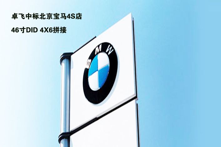 卓飞中标北京宝马4S店--亚洲最大旗舰店(LANETCO 46寸DID 4X6拼接方式)--液晶单元采用韩国SAMSUNG电子超窄边面板,经过拼接显示后,物理拼缝为6.7mm,光学拼缝为7.3mm,边框最窄处为2.4mm,单屏分辨率1366x768。