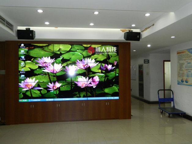 研究院信息发布显示系统LCD液晶拼接屏由广州市能人计算机科技有限公司承建。该LCD液晶拼接屏采用9台NEC超窄边液晶拼接 X461UNV以3*3的形式拼接组成大屏幕液晶拼接屏,内部卫星电视信号通过机顶盒转换输出视频信号,视频信号通过图像处理器上大屏幕,同时内部局域网内电脑接入图像拼接控制器。大屏幕可实现同时显示视频信号和电脑信号,及图像的叠加,漫游等功能。有线电视音频通过调音台,功放,均衡器,音响等设备,进行同步工作。