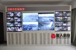 解决方案:本项目由4台NEC X462UN液晶显示器,以2*2的形式拼接组成核心大屏幕显示墙,两侧各配有8台22寸监视器。实时监控信号通过矩阵控制,可分别上监视器或经图像拼接控制器在大屏幕上显示。图像处理器完成图像的叠加,漫游和组合拼接功能,可将监控室内任意接入监控信号在大屏幕上显示,进行重点监视。