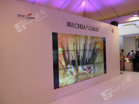 泰国清迈展区于2012年采用沧龙46寸超窄边液晶拼接大屏,应用于该馆的展会宣传展示。