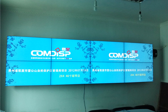 目中,采用一套4X2的三星46寸超窄边液晶拼接屏,采用了HDMI信号源模式。项目用液晶拼接墙主要是用来辅助显示人员的在自然保护区内的情况,通过电