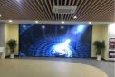 该背景墙采用安恒集团代理的20片松下TH-55LFV70C,通过5*4的组合方式实现大视角的绚丽画面,到访者可尽情地欣赏企业发展史、奋斗史、文化史的融合。这款不同于以往的超窄边框视频墙完美的应用在企业展厅中,即便是大屏幕排列,屏幕的边缘也很难被察觉,成功地让场景表现更加自然有力。高亮度的屏幕确保了画面的清晰度,为观看者呈现生动自然的场景。