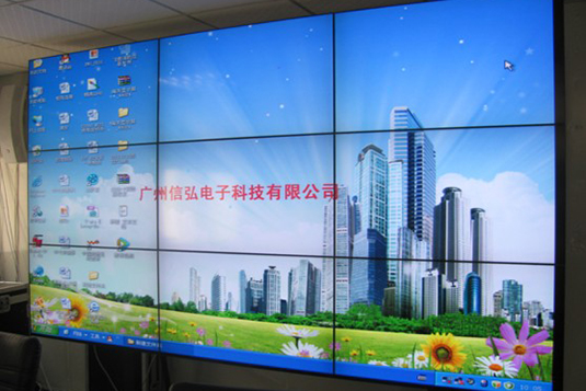 本项目采用信弘46"超窄边液晶拼接单元,3行3列9拼接,该拼接产品主要是播放龙光地产公司的广告宣称片, 1920×1080分辨率的高清播放画面,配合动听的背景音乐及楼盘推荐解说。总是能给前来寻盘的客户带来耳目一新的感觉。这是广州信弘液晶拼接墙再次进入房地产行业。