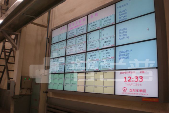 辽宁沈阳车辆段LCD液晶拼接墙大屏幕显示系统由北京普兰普系统技术有限公司承建。该LCD液晶拼接墙显示系统采用了46"的三星面板,分辨率1366*768,4行*4列,能够充分满足辽宁沈阳车辆段的需要,是LCD液晶拼接墙显示系统在铁道部门应用的一个经典工程案例。