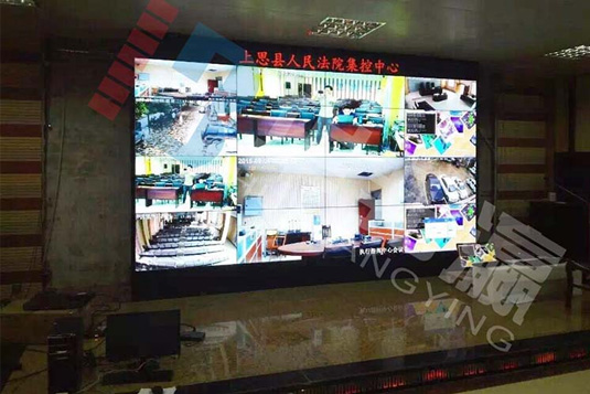 此工程是深圳华邦瀛科技有限公司为广西省防城港市上思县人民法院集控中心建设的大屏幕视频墙系统,采用46寸4*4 3.5MM拼缝液晶拼接,所有庭审视频信号通过光纤传送至信息中心大屏系统,实现数字庭审功能,对原被告、证人、法官、公诉人、犯罪嫌疑人、电子证据画面进行实时采编录像和网络直播,满足庭审音像资料库存档、远程观摩和领导在线监督的需求。