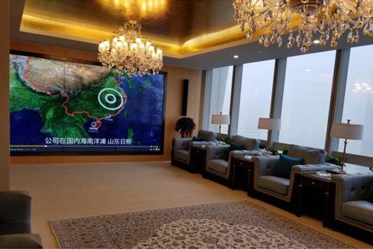 中国华信集团会议室选用飞利浦3.5mm拼缝主流拼接液晶显示产品(3X3BDL5588XC)打造高端会议显示平台。该显示单元都采用直下式LED背光源,具有1920×1080Full HD全高清显示分辨率,55英寸的BDL5588XC亮度达500cd/m²。