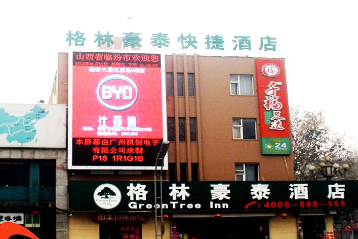 2012年农历春节前夕,广州祺创科技成功安装调试完成山西临汾的户外全彩LED显示屏,该屏幕位于临汾格林豪泰快捷酒店墙外,近50平方米,LED显示屏效果良好,投入使用得到用户的好评!