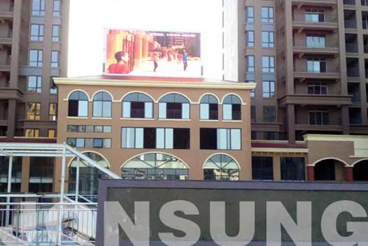四川屏山王府井步行街区地处屏山新县城丁石路上,县政府旁,同时还与五所学校、两所医院为邻。屏山王府井总占地面积35000多平方米,集合现代名品商业、精品公寓、主题游乐公园。中祥创新两块面积总达100平米的 P10户外led显示屏分别安装在这繁华之地,为屏山王府井广场的商业、文化宣传助阵。