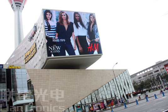 由联建光电打造的339欢乐颂购物中心大型户外LED显示屏,装饰于建筑物左侧,电视塔下方,由于建筑物独特的造型,给屏幕安装带来了一定难度,既要做到整屏平整无缝,又要不破坏建筑物的整体美观,联建光电工程人员秉着敬业、专业的态度,顺利完成该项目的安装及点亮,使屏幕完美契合建筑物造型。得天独厚的安装位置、648㎡的超大面积、清晰逼真的画质给人以无与伦比的视觉震撼感,最大限度的辐射过来消费人群。