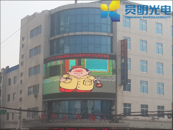 我公司所承制的显示屏位于渭南澄城县华元大厦,外弧结构。面积共140平方米,此项弧形屏的工程方案对设计要求很高;采用国内一线品牌管芯、控制系统,显示屏播放画面立体感强,色彩绚丽,画面流畅,清晰度高,其独特的显示视角以其无可替代的表现形式傲视媒介群雄,深受客户的好评。并且为澄城县的城市形象及文化推广起到了极大的推动作用。