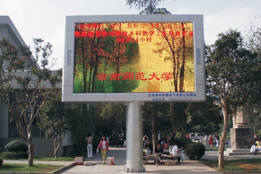 云南师范大学本部户外全彩LED显示屏,像素间距16mm,显示面积16.7平米。
