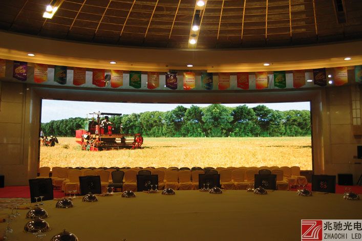 内蒙古新城宾馆是内蒙古自治区的国宾馆、第一家五星级宾馆、全国文明单位、中国国宾馆协会主席单位。该屏幕是安放在宾馆国宴厅中,主要用于接待宴会、结婚宴会、政务会议、商务会议等。显示屏总长13米,高度为3.8米,总面积达50平米,屏幕总象素数达到了130万。同时该显示屏采用了弧形结构,钛金板装饰,与原有建筑造型和环境完美搭配。该屏幕显示视频、图片、文字清晰,显示效果好。