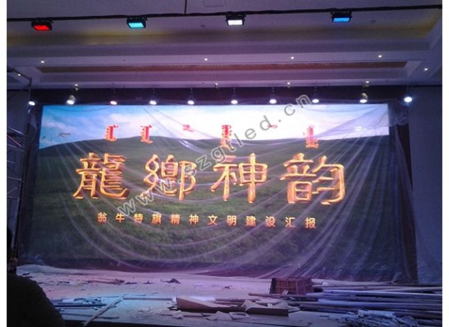 内蒙古赤峰市全宁酒店室内全彩LED显示屏采用顾通科技P6规格,LED显示屏面积48.58平米,它有传统布景所无法比拟的灵活性和虚拟性,又有灯光系统所具备的部分光源特点,制造联想,活跃气氛,丰富演出内容,变体多样,灵活自如等都是LED舞台背景屏的特色。
