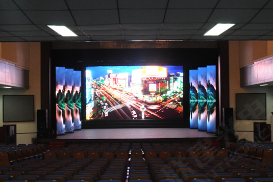 LED显示屏因为其逼真的画面、靓丽的颜色时常被用作舞台演艺的背景,以烘托舞台气氛,美化现场装饰等,尤其受大型剧院、企事业单位礼堂所青睐。