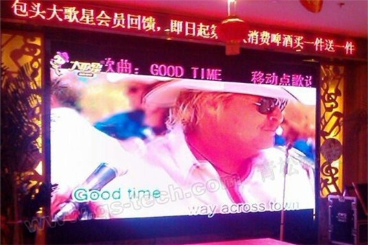 包头大歌星KTV室内全彩LED显示屏由青松科技承建,该室内全彩LED显示屏的间距为6mm,屏体采用ZEUS前维护固定安装,能够充分满足客户的需求。