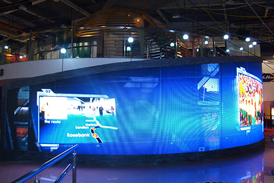 世博南非馆室内全彩LED显示屏大屏幕系统由华灿光电股份有限公司承建。该室内全彩LED显示屏系统采用了P7.62规格,LED显示屏面积75平米,为世博南非馆室发布提供了便利,是室内全彩LED显示屏在博览演艺应用的一个经典工程案例。