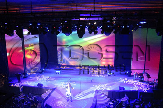 合肥市蓝鼎温泉演艺厅室内全彩LED显示屏采用P6规格,面积39.8平米。