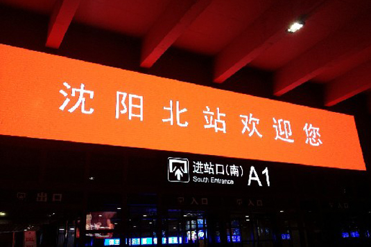 沈阳北站室内全彩LED显示屏采用P5规格,面积60平米。