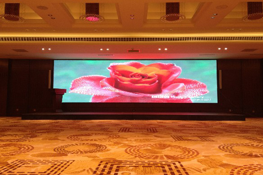 通辽鑫达酒店室内全彩LED显示屏采用P6规格,面积26.67平米。