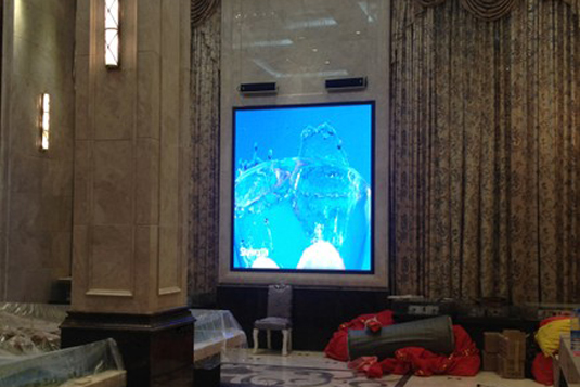 沈阳公园道壹号售楼处室内全彩LED显示屏采用P5规格,面积10平米。