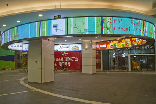 国盛中心商场室内全彩LED显示屏采用P6规格,显示屏面积为71.56㎡。