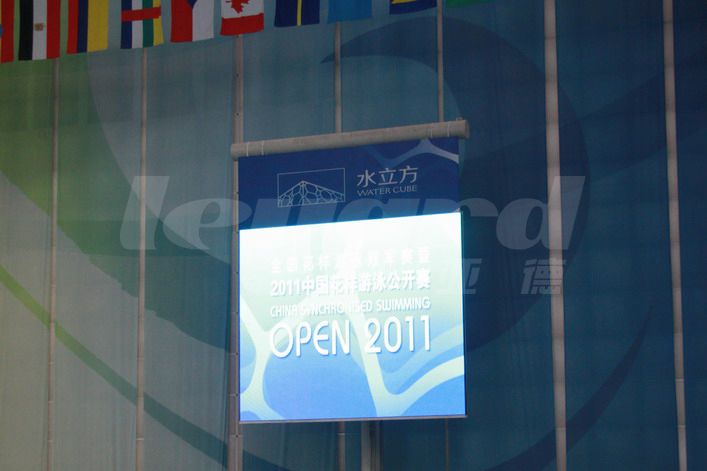 “水立方比赛大厅室内全彩LED显示屏大屏幕显示系统”由“利亚德光电股份有限公司”承建。该室内全彩LED显示屏信息发布系统采用了P12规格,LED显示屏面积29平米,是室内全彩LED显示屏在体育馆赛事信息发布应用的一个经典工程案例。