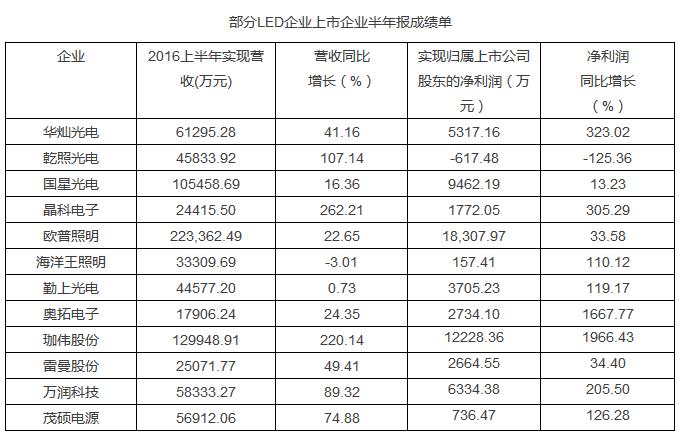 近几天,除了Cree公布了2016年度会计年度第四季度财报外,华灿、国星、晶科、海洋王、勤上等数家企业也晒出了自己的半年度"成绩单"。各家企业年中大考如何?