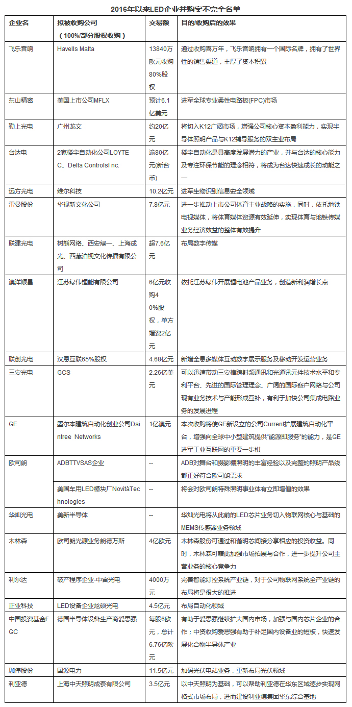 今年上半年,LED行业并购化进程进一步提速。以并购为主的发展模式成为LED企业谋求海外市场、跨界转型的捷径。在LED行业,动则亿级的并购案时有发生,LED企业的并购方向也是多种多样,且来看一下。
