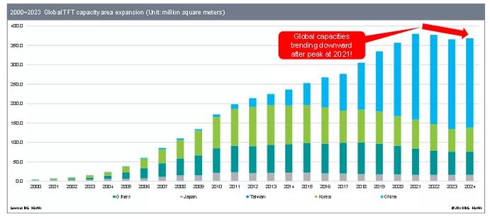 2000~2024 全球面板产能面积及预测