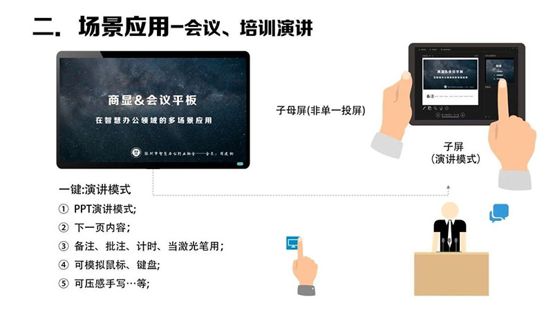我今天和大家分享的题目是:商显和会议平板在智慧办公领域的多种应用。