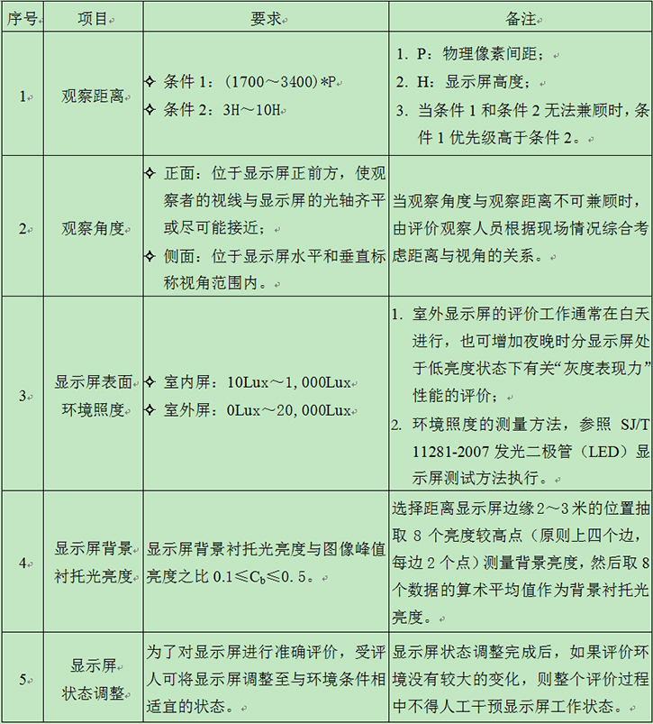 本标准在编写结构上主要参考了国家标准《彩色电视图像质量主观评价方法》,但在主要内容上,综合考虑了LED器件的发光特性、LED显示屏的组成特点、加工工艺、LED显示屏的使用场合等方面的不同特性确定了与之相适应的主观评价方法。