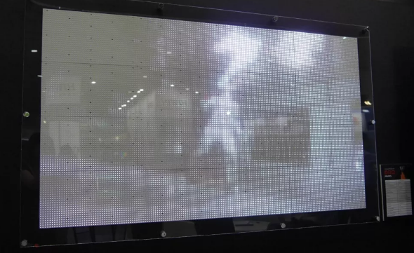 隆达展出的半透明Micro LED显示屏是与爱尔兰新创公司X-Celeprint共同合作的展品,首度在台亮相。以覆晶技术(Flip Chip)将Micro LED晶粒安放在透明玻璃基板上,芯片间距只有0.35mm,亮度可达30,000nits。现场可见4吋的RGB显示屏色彩鲜艳,6吋的绿色显示屏则展现高亮度。