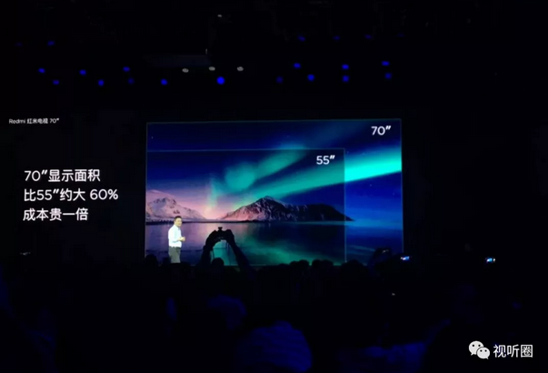 Redmi红米首款70寸电视除了用“价低尺寸大”这一招力拓家用彩电市场之外,还瞄准商用会议市场,准备和投影产品“抢食”会议市场。